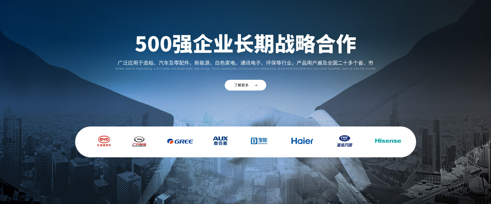 戰略合作夥伴廣泛應用於造船、汽車及零配件、新能源、白色家電、通訊電子、環保等行業,產品用戶遍及全國二十多個省、市